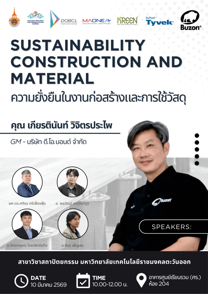 DOBOND Co., Ltd. was honored to participate in a special academic lecture titled “Sustainability Construction and Material”, organized by the Department of Architecture, Rajamangala University of Technology Tawan-Ok. The event aimed to share knowledge and perspectives on sustainable construction practices and the responsible use of building materials.